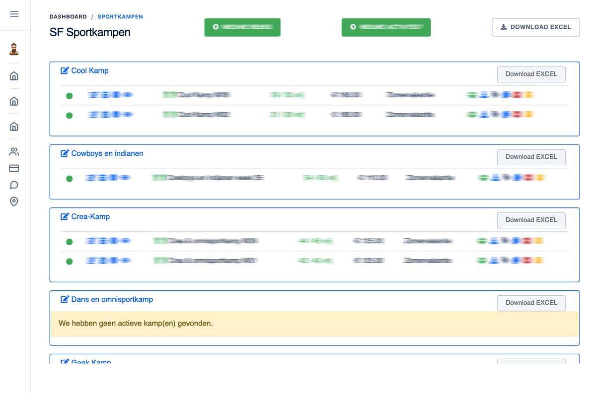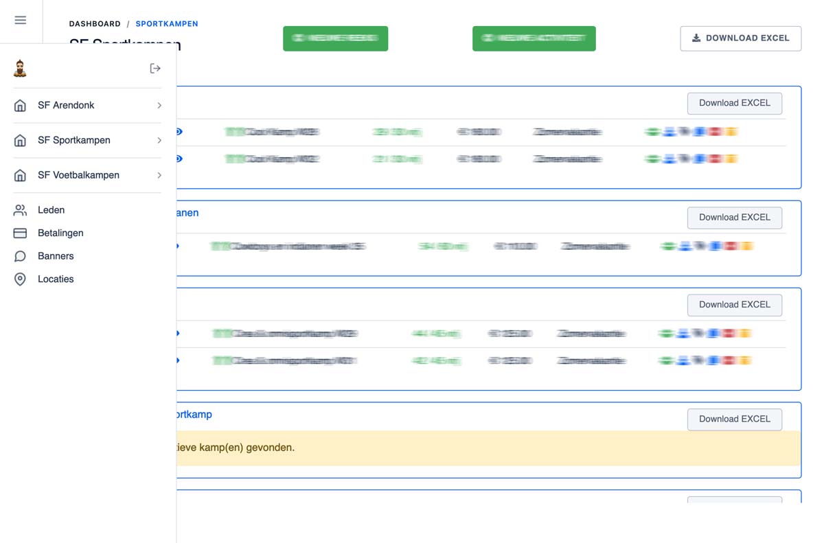 Voor beheerders hebben we een krachtige admin-interface op maat gebouwd, waarmee je eenvoudig alle kampdetails kunt ingeven en beheren, ledeninformatie kunt opvragen of lijsten kunt downloaden en een overzicht van betalingen kunt inzien. Het draait hier niet alleen om sportplezier, maar ook om naadloze administratieve ondersteuning voor een vlekkeloze kampervaring.